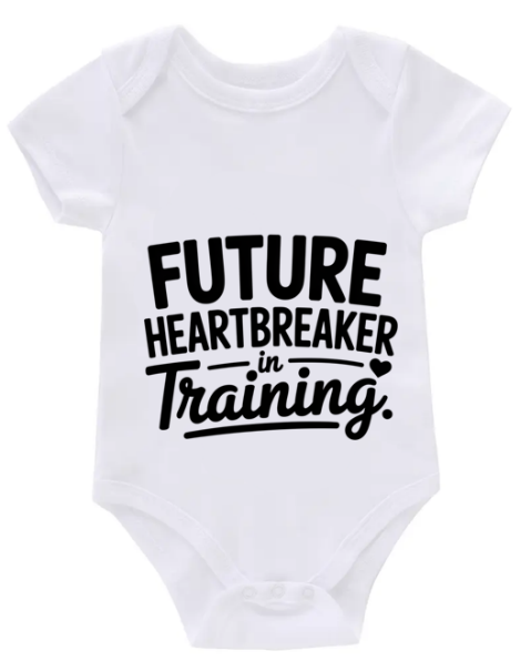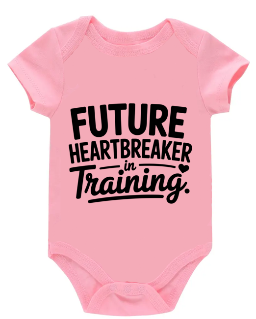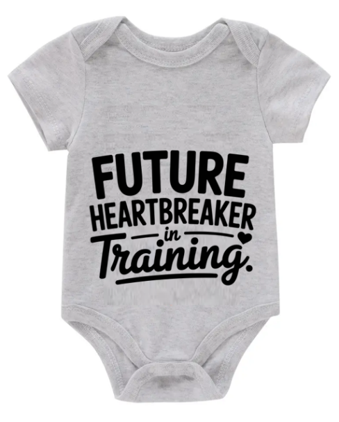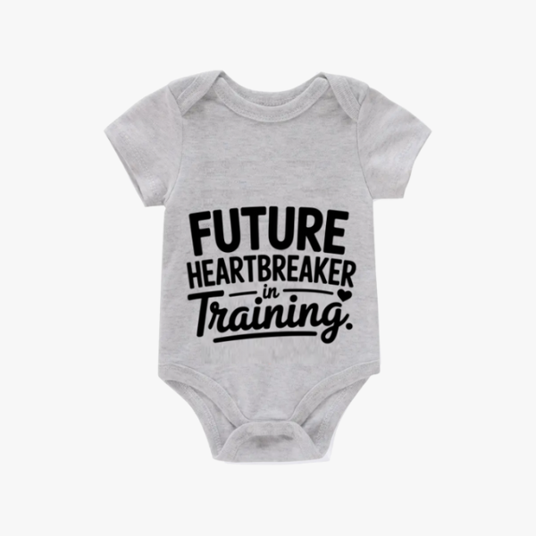 Future Heartbreaker In Training Babygrow. Comes in three colours – Grey, Pink and White.