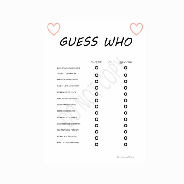Here is the infamous ‘Guess Who’ game. Decide who did it first between the bride and groom.